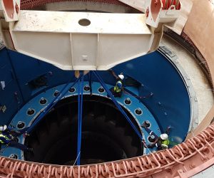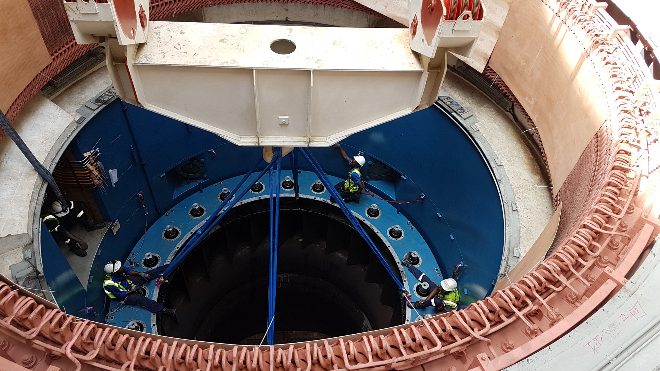 Pose du rotor du groupe G1 de la Centrale Hydroélectrique de Nangbéto